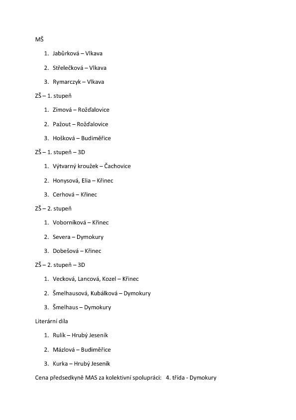 Předání cen v MZŠ Dymokury